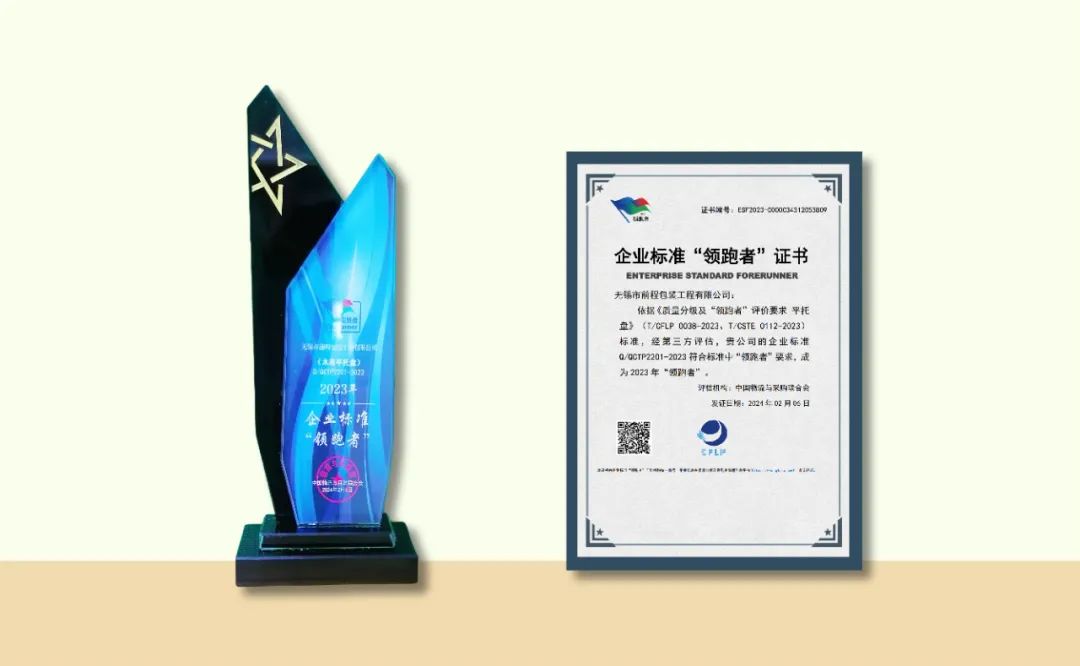 前程包裝榮獲國家級行業榮譽-企業標準“領跑者”證書